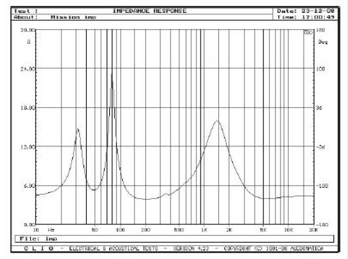 Zastosowanie większej obudowy pozwala optymalnie dostroić bas, osiągnąć niższą częstotliwość graniczną i dobrą odpowiedź impulsową, jednak jak się okazuje, w tym celu nie była potrzebna aż taka kubatura, jaką wyznacza cała bryła Mission M33i - dlatego jej dolna część jest oddzielona przegrodą i niewykorzystana, chociaż można ją zasypać piaskiem lub innym balastem; dostęp zapewnia duży otwór na tylnej ściance, zamknięty dużym plastikowym kapslem.