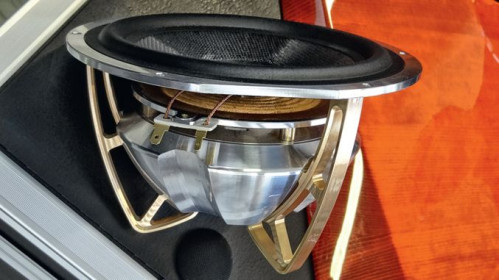 Zostały nam jeszcze do "zrobienia" ścianki tylne i przednia. Wykonano je z aluminium - a dokładnie z Avionalu, stopu o wysokiej zawartości miedzi. Ergal, stop aluminium o wysokiej zawartości cynku, znalazł z kolei zastosowanie w konstrukcjach samych przetworników, wraz z jeszcze innym stopem, tym razem głównie cynku i cyny - Gun metal - z którego wykonano ramiona koszy. Połączenie tych stopów redukuje ich własne rezonanse i gwarantuje "ciszę" w tym kluczowym miejscu konstrukcji.