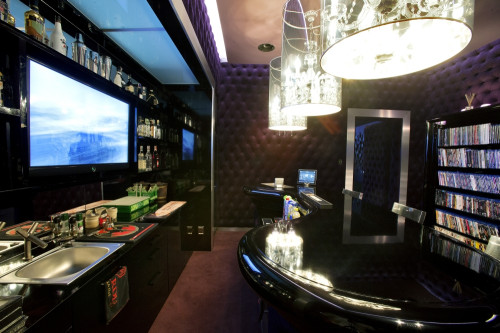 Jak wygląda sala kinowa? Składa się z trzech pomieszczeń. Pierwsze to wejście, które przypomina tradycyjne stoisko z biletami hollywoodzkiego kina. Dalej znajduje bar połączony ze strefą systemu multiroom z odsłuchem z kina i podglądem obrazu na telewizorze.