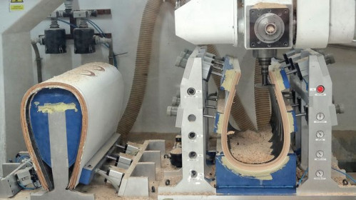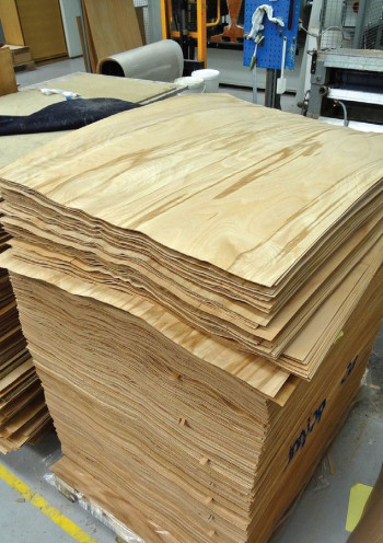 Obłogi, które skleja się i kształtuje na prasach, tworząc wielowarstwowe sklejki o żądanym kształcie.