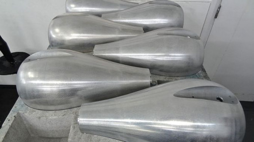 Średniotonowe "głowy", wcześniej wykonane z Marlanu, są teraz odlewane z aluminium. Tutaj już oczyszczone i przygotowane do lakierowania.