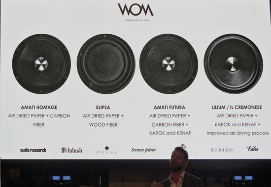 Obok kwestii marketingowych, dużo czasu poświęcono wykładom z techniki; większość przedstawionych tematów opisywaliśmy już przy okazji testów, ale oto przykład – omówiono ewolucję materiału membran w głośnikach Sonusa fabera.