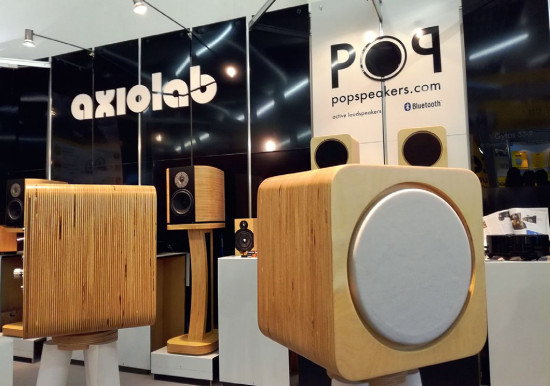 Aktywne głośniki Popspeakers włoskiej wytwórni Axiolab. Obudowy z "wydrążonej" sklejki, design mniam mniam.