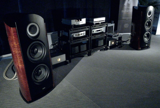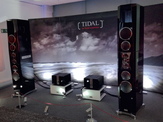 Flagowe kolumny (i monobloki) Tidal La Assoluta. Sekcja średnio-wysokotonowa oparta na przetwornikach z membranami diamentowymi (Accutona), zwłaszcza średniotonowe są tutaj czymś niezwykłym; wraz z parą La Assoluta kupujemy 54 karaty diamentu.
