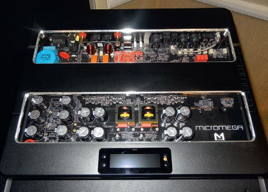 Adrian Hamdi, szef Micromegi, przedstawił koncepcję i konstrukcję wzmacniaczy M-One. W tym momencie pokazuje transformator, jakiego w M-One... nie ma, a jaki musiałby być, gdyby nie zastosowanie zasilacza impulsowego. Temat mamy już zaliczony, w poprzednim numerze zamieściliśmy wcześniej przygotowany, pełny test M-One 150, który grał też na Konwencji, razem z Focalami Kanta No.2. Puszczano zarówno pliki, CD, jak i winyle; te ostatnie udowodniły, że prowadzona we wzmacniaczu konwersja A/C, a potem C/A (pierwsza jest konieczna dla obrabiania sygnału przez cyfrowy system korekcji M.A.R.S., druga – aby podać sygnał do końcówek mocy pracujących w klasie AB), niczego zauważalnie nie popsuła, za to wspomniana korekcja znacząco (i pozytywnie) wpływała na brzmienie. Najlepszy dźwięk Konwencji.