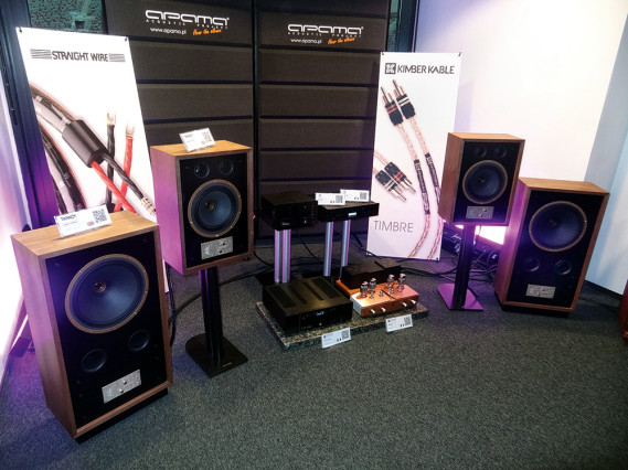Jedna z najbardziej intrygujących i przekonujących prezentacji. "Kultowa" konstrukcja JBL-a, L100, została zrewitalizowana i po koniecznych modyfikacjach, ale przy zachowaniu podstawowych założeń konstrukcyjnych, wprowadzona niedawno do sprzedaży jako L100 Classic. Ponieważ zachowano oryginalną formę obudowy, typową dla konstrukcji sprzed kilkudziesięciu lat, więc wymaga ona, dla ustalenia właściwego kierunku promieniowania, podstawek i lekkiego pochylenia do tyłu; jest jednak dość niepozorna, więc aby wyglądała bardziej efektownie i nowocześnie (a na wystawie zwracała na siebie większą uwagę), można ją kupić z awangardowymi, pomarańczowymi maskownicami (wciąż piankowymi - jak drzewiej bywało; wersja czarna też jest dostępna). To firmowy kolor JBL-a, do którego chyba nieprzypadkowo dopasowane są buty skrzypaczki, pani Anny Hara-Pióro. Porównywaliśmy wykonanie na żywo z tymi samymi utworami, odtwarzanymi z pary L100 Classic... Rewelacja, mimo wszelkich różnic, a największą było to, że dźwięk z głośników biegł „z dołu”, i tutaj trzeba stwierdzić, że obowiązujący już od wielu lat schemat, w którym dźwięk biegnie z wysokości ok. metra, jest znacznie lepszy, niż ten sprzed pół wieku. Nic jednak nie stoi na przeszkodzie, abyśmy uszykowali sobie znacznie wyższe podstawki (już niepochylone) i w ten sposób problem rozwiązali. Dźwięk L100 Classic jest mocny, gęsty, ale czysty i wyrazisty. I wcale nie jest "archaiczny"... może poza tym kierunkiem, z którego biegnie.