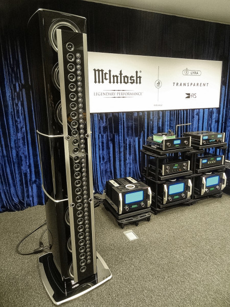 McIntosh to nie tylko elektronika, ale i równie oryginalne kolumny - sekcje średniotonowe i wysokotonowe złożono z kilkudziesięciu przetworników, tworzących tzw. źródło liniowe, mające specyficzne charakterystyki kierunkowe, jak też inną funkcję spadku ciśnienia przy zwiększaniu odległości.