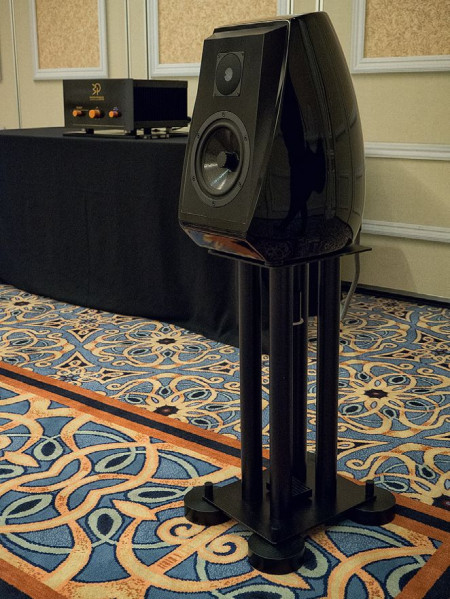 Avantgarde Acoustics Zero 1XD wystawiano w olbrzymiej sali. Źródło schowano za parawanem, podkreślając w ten sposób nowoczesność systemu.