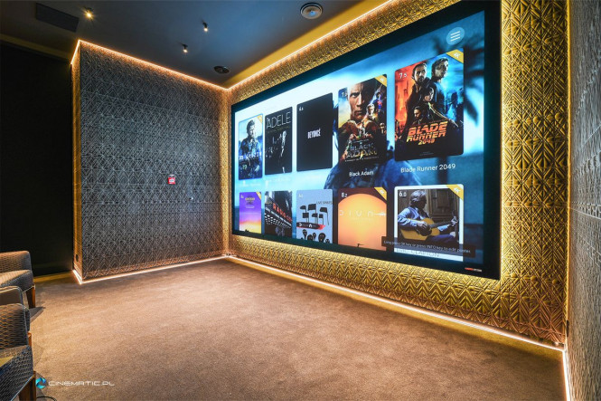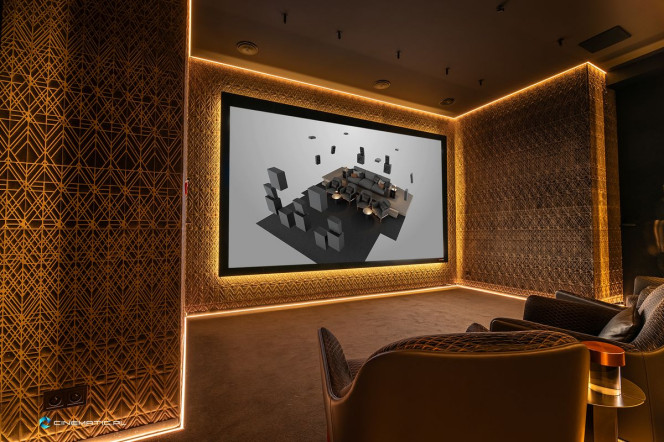 Salon został wyposażony w najnowocześniejsze rozwiązania technologiczne. Serce systemu tworzą najnowszy projektor 4K HDR Sony VPL-XW8100 wraz z ekranem projekcyjnym Screen Research o przekątnej 160 cali. System nagłośnienia Dolby Atmos składa się z 22 głośników, w tym 6 potężnych 18-calowych subwooferów Procella Audio.
