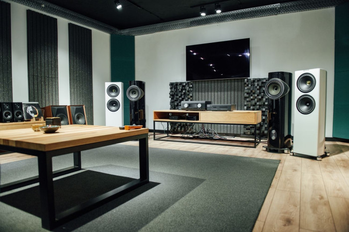 Mimo wprowadzenia charakterystycznych elementów rozpraszająco-tłumiących, akustyka przypomina typowe warunki domowe, stąd ocena właściwości brzmieniowych samego sprzętu może być rzetelna i związana z jego przeznaczeniem. W innych pomieszczeniach można wstępnie zapoznać się ze sprzętem, jest wystawiony w sposób uporządkowany i wygodny, przy dobrym oświetleniu.