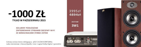 • W październiku w sprzedaży pojawią się ponadto promocyjne zestawy strumieniowe - do kolumn podłogowych Polk Audio RTi (A5, A7, A9) odtwarzacze strumieniowe VOCO V-Zone i Polk Omni P1 (do wyboru) dołączane są za pół ceny. Promocja będzie obowiązywać do końca listopada.