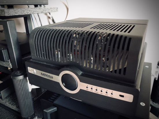 Synthesis A40 Virtus to potężny, bardzo wydajny wzmacniacz lampowy wyposażony w wysokiej klasy przetwornik C/A. Konstrukcja bazuje na lampach mocy KT66, lampach sterujących 12BH7 oraz stopniu wejściowym zbudowanym na ECC83/12AX7. Urządzenie dysponuje mocą 40 W/kanał przy 6 omach w klasie AB1.