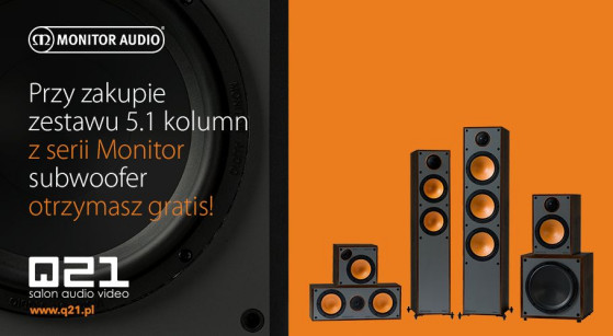 Przy zakupie dowolnego zestawu kolumn Monitor Audio serii Monitor w konfiguracji 5.0, bazującego na podłogowych kolumnach przednich, otrzymujemy dedykowany do tego zestawu aktywny subwoofer Monitor Audio MRW-10.