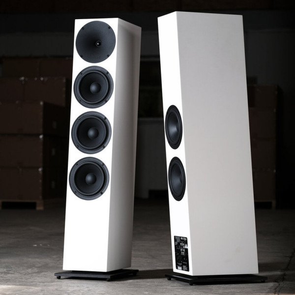 Buchardt A700 to 3.5-drożna konstrukcja z 4 wzmacniaczami klasy D do każdego głośnika (4 x 150W), wyposażona w czterordzeniowy układ DSP oraz podwójny układ DAC Cirrus Logic CS4398.