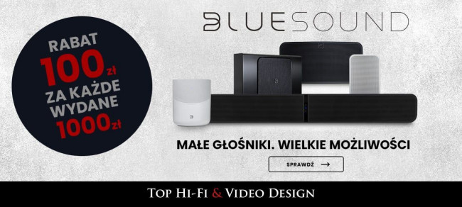 Salony Top Hi-Fi & Video Design przygotowały również ciekawą promocję na produkty Bluesound, dzięki której można sporo zaoszczędzić. Zasady są bardzo proste – każde wydane 1000 zł oznacza rabat w wysokości 100 zł. Można z niego skorzystać zarówno w salonach stacjonarnych, jak i w sklepie internetowym www.tophifi.pl. W tym drugim przypadku po umieszczeniu produktów w koszyku rabat naliczy się automatycznie.