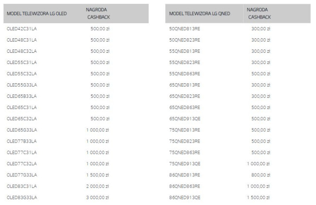 Aby wziąć udział w promocji i otrzymać Cashback nawet 3 000 zł, należy kupić jedno ze wskazanych urządzeń. Lista sklepów biorących udział w akcji obejmuje sklep online LG, LG Brand Store w Warszawie i Wrocławiu oraz stacjonarne i internetowe sklepy Media Expert, RTV EURO AGD, Media Markt, x-kom, Audio Color, Studio Hi Fi, KDK i Loco.