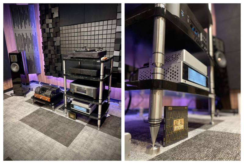 Urządzenia są prezentowane na włoskich meblach Solidsteel z serii HF. Solidne wykonanie z materiałów najwyższej jakości współgra tu z luksusowym wzornictwem. Cały system został połączony francuskimi przewodami Esprit HIGH END AUDIO.