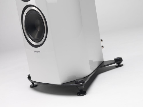 Bass reflex został umieszczony w dolnej części obudowy głośnika i skierowany w podłogę. W ten sposób czystość dźwięku nie jest skażona przez wibracje generowane przez mocne przetworniki głośnika.