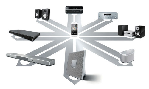 Każde z urządzeń MusicCast współpracuje z aplikacją sterującą (smartfon), przesyła sygnał (poprzez sieć LAN lub Wi-Fi) swobodnie do i z dowolnego innego źródła.