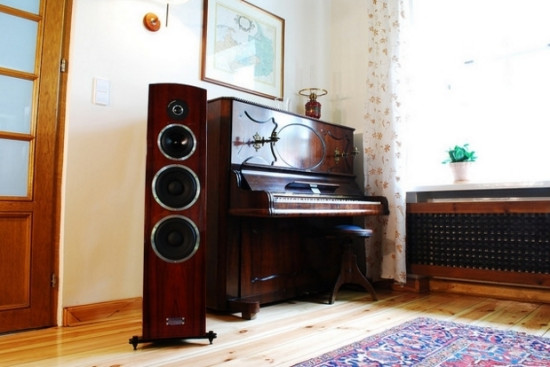 Para kolumn wykończonych drewnem waży ok. 110 kg. Obudowy (wykończenie błyszczącym lakierem fortepianowym) mają być wolne od rezonansów, a dźwięk czysty i naturalny.