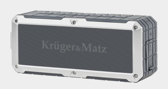 Przenośny głośnik Kruger&Matz Solo wykorzystuje 40 mm przetwornik. Dodatkowo został wyposażony w slot microSD, by odtwarzać muzykę bezpośrednio z karty pamięci oraz w wejście AUX, za pośrednictwem którego można połączyć go z urządzeniami, które nie oferują funkcji Bluetooth.