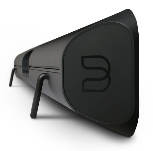Obudowę soundbara wykonano z tłoczonego aluminium cenionego za wytrzymałość. Urządzenie można ustawić na półce lub za pomocą dołączonych akcesoriów zawiesić na ścianie.