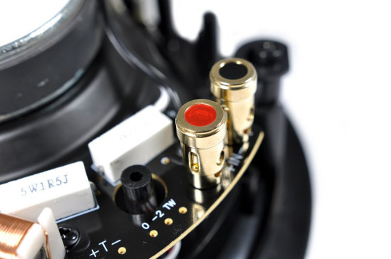 • Kopułka wysokotonowa - jedwabna z zabudowanym rozpraszaczem zawieszona nad środkiem membrany średniotonowej dla uzyskania bardziej punktowego źródła dźwięku.