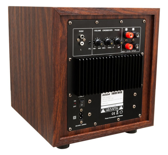 KODA SW-850mkII ma na pokładzie wydajny 8" głośnik niskotonowy z dużym wychyłem i zmodyfikowaną membraną z celulozy, który potrafi znieść długą pracę przy dużym obciążeniu. Wysoka moc ciągła na poziomie 100W oraz 250W mocy szczytowej ma zapewnić głęboki, mocny liniowy bas i zredukowane zniekształcenia. Dodajmy, że bas możemy uzyskać jeszcze niższy, a to za sprawą dolnego bassreflexu zwiększającego ciśnienie.