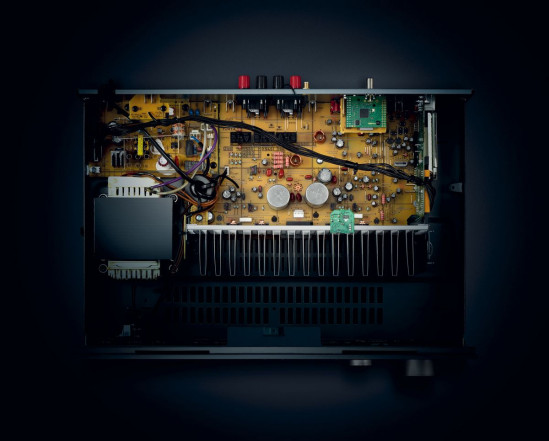 Projektanci wyposażyli amplituner w wysokiej klasy wzmacniacz. Moduł ten wykorzystuje dyskretną konfigurację typu push-pull i zapewnia maksymalną moc wyjściową 140 W na kanał (8 Ω). Całość charakteryzuje się niską impedancją i ograniczoną do absolutnego minimum długością toru sygnałowego.