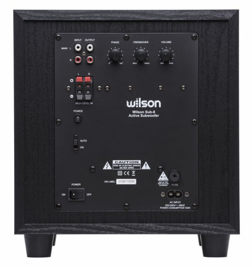 Wilson SUB-8 to kompaktowy subwoofer z 8-calowym (210 mm) przetwornikiem niskotonowym, solidną obudową i wbudowanym wzmacniaczem Klasy A/B o mocy 65 W. Ma zapewniać dobre wsparcie niskich częstotliwości zarówno we współpracy z systemami dźwięku przestrzennego kina domowego, jak i stereofonicznymi systemami głośnikowymi.