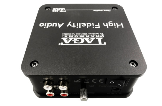 Taga Harmony TTP-300 ma wyjście analogowe umożliwiające łatwe połączenie do wejścia liniowego wzmacniacza. Ma też przedni przycisk do wyboru wkładki MM/MC i pozłacane terminale RCA. Zastosowano w nim układy scalone o bardzo niskich szumach własnych. Oferuje również dokładną korekcję krzywej RIAA.