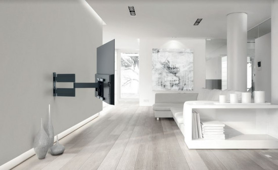 W pełni ruchoma konstrukcja pozwala obracać urządzenie w poziomie w zakresie 180 stopni, dzięki czemu domownicy zawsze mogą cieszyć się najlepszym widokiem z dowolnego miejsca w pokoju. Przy całkowitym rozłożeniu uchwytu telewizor odsuwa się od ściany na odległość 63 cm. Po zamontowaniu urządzenia pomiędzy ścianą i telewizorem pozostaje jedynie 4,5 cm wolnej przestrzeni.