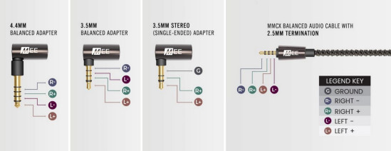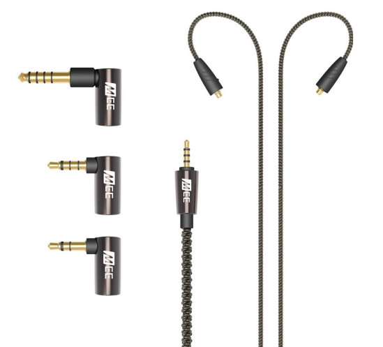 Zestaw MEE Audio CMB BAL SET składa się z wysokiej klasy uniwersalnego kabla słuchawkowego ze złączami MMCX (Micro-Miniature Coaxial) terminowanego wtykiem micro jack 2.5 mm oraz trzech adapterów: zbalansowanego 3,5 mm, niezbalansowanego 3,5 mm oraz najnowszego standardu 4,4 mm.