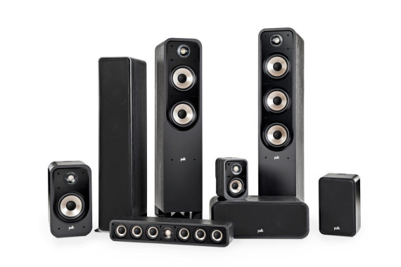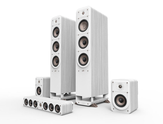 Modele Polk Audio S55e oraz Polk Audio S50e oferują taką samą wydajność jak kolumna głośnikowa S60e. Model S55e ma dwa 6,5-calowe przetworniki średniozakresowe, a S50e dwa przetworniki o średnicy 5,25 cala. Kaskadowy układ zwrotnicy czterech przetworników (S60e i S55e) lub trzech przetworników (S50e) zapewnia bardziej realistyczną scenę dźwiękową. Zastosowano również grille antydyfrakcyjne dla uzyskania idealnego dopasowania i minimalnej interferencji dźwiękowej, oraz podwójne, pozłacane zaciski głośnikowe dla łatwej instalacji.