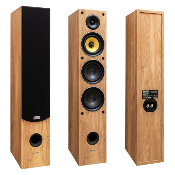 - Konstrukcja: kolumna podłogowa 3-drożna; obudowa 12 mm MDF TLIE; punkty odcięcia zwrotnicy 380Hz, 2.8 kHz