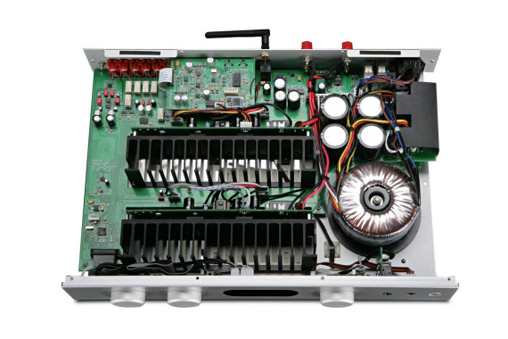 Jeśli chodzi o budowę, to Audiolab 6000A wykazuje podobieństwo do 8300A, a to za sprawą dużych pokręteł regulacji i dużego, centralnego wyświetlacza OLED. W przeciwieństwie do jego bardziej kosztownego, analogowego rodzeństwa zawiera wysokiej jakości przetwornik C/A, umożliwiając bezpośrednie podłączanie źródeł cyfrowych bez dodatkowych urządzeń. Na pokładzie znajdziemy cztery wejścia cyfrowe, trzy analogowe wejścia liniowe, wejście dla gramofonu, łączność bezprzewodową przez Bluetooth i wzmacniacz słuchawkowy. Wysokiej jakości wzmacniacz zdolny obsłużyć wymagające kolumny.