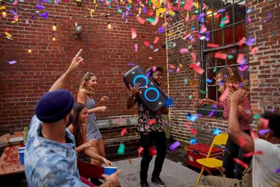 By zwiększyć moc głośników, możemy połączyć ze sobą dwa modele Partybox - przewodowo lub bezprzewodowo dzięki technologii TWS (True Wireless Stereo).