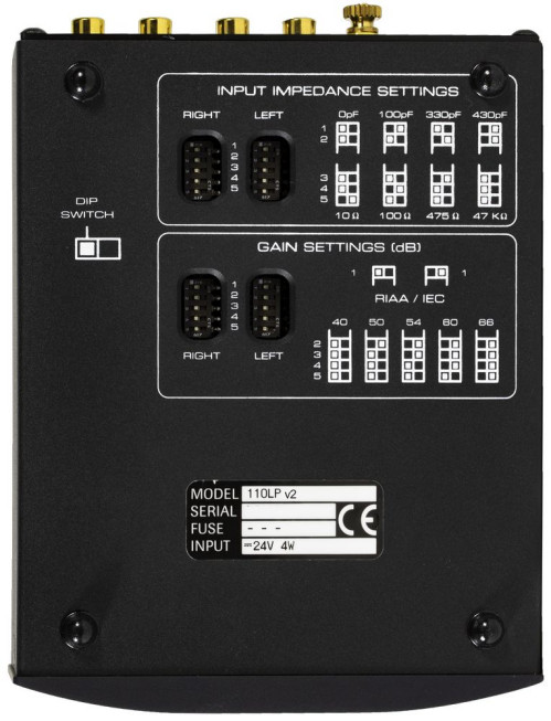 Urządzenie jest niewielkie, umożliwia dopasowanie do dowolnej wkładki z wykorzystaniem trzech par mikroprzełączników na dolnej ściance. Możemy w ten sposób ustawić impedancję (47 kΩ, 475 Ω, 100 Ω i 10 Ω), pojemność oraz wzmocnienie dla wkładek typu MM oraz MC (40 dB, 50 dB, 54 dB, 60 dB i 66 dB). Wersja v2 daje większe możliwości ustawień, ma również lepszy zasilacz 24 V.