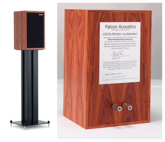 Pierwszym modelem Falcona na naszym rynku jest LS3/5a. Te zestawy głośnikowe są produkowane na licencji BBC przez różne firmy. Falcon Acoustics podkreśla jednak unikalny charakter swojej wersji. Korzystając z doświadczenia Malcolma Jones'a zapewniono, że są to jedyne LS3/5a w pełni zgodne ze specyfikacją z lat 70. XX w., aczkolwiek wykonane precyzyjniej niż dawne oryginały.