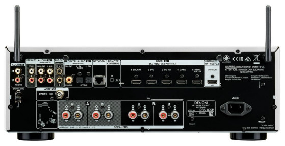 W DRA-800H Denon wykorzystał technologie stosowane w amplitunerach AV, oferując połączenie dwukanałowego odsłuchu wraz z zaawansowaną funkcjonalnością, jak rozdzielczość wideo 4K Ultra HD oraz HDMI ARC. Urządzenie jest wyposażone w tunery radiowe FM / DAB+, wejście Phono, moduł Wi-Fi i wiele wejść cyfrowych, w tym HDMI.