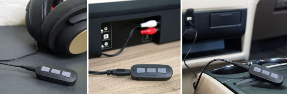 Umożliwia on parowanie z telefonami, laptopami, komputerami, tabletami i innymi nadajnikami Bluetooth, by bezprzewodowo przekazać dźwięk za pośrednictwem złącza 3,5 mm jack AUX lub RCA do urządzeń bez wbudowanego modułu łączności bezprzewodowej, na przykład słuchawek, zestawu stereo czy kina domowego, soundbara, samochodowego zestawu audio i innych.