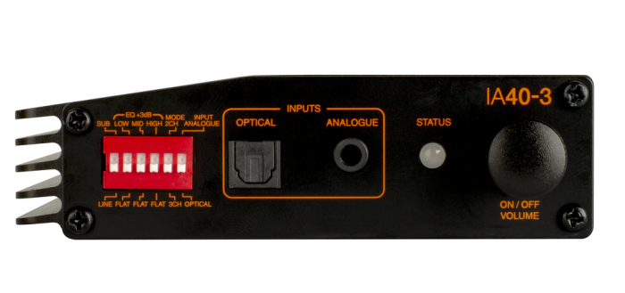 Jeśli potrzebujemy więcej basu do wyjścia sub/line IA40-3 możemy podłączyć aktywny subwoofer. Z możliwych przyłączy do naszej dyspozycji są także w optyczne wejście cyfrowe i wejścia analogowe RCA, jak również w łącze Bluetooth aptX oferujące przesył sygnału cyfrowego o jakości CD z urządzeń przenośnych.