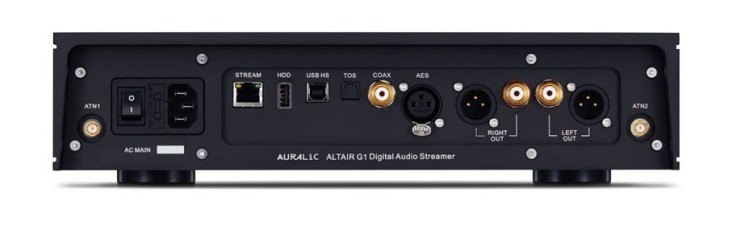AURALiC ALTAIR G1 został wyposażony w cyfrowe wejścia COAX, TOSLINK i AES / EBU, a także pojedyncze wyjścia RCA i zbalansowane wyjścia XLR. Projektanci uwzględnili również wyjście słuchawkowe stereo na panelu przednim oraz USB.