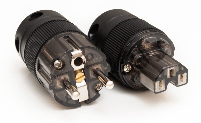* Wysokiej jakości wtyczka Schuko i złącze IEC z bolcami i uziemieniem wykonanymi z rodowanego niemagnetycznego mosiądzu zapewniające świetne przewodzenie, izolację i połączenie. Obydwa przystosowane do obciążeń 16A / 250V.