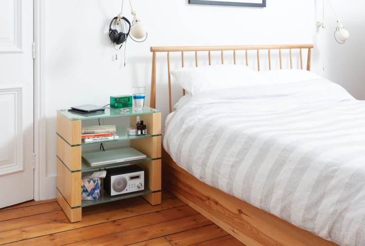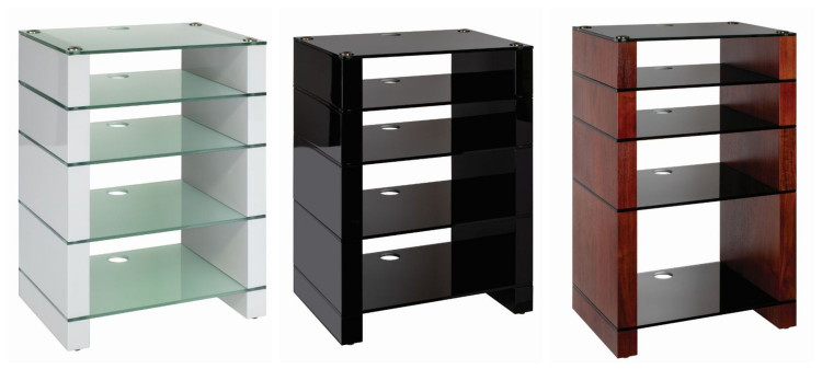 Seria mebli Stax powstała z myślą o przechowywaniu urządzeń hi-fi i audio-wideo. Oferuje duży wybór rozmiarów i rodzajów wykończenia. Tych ostatnich są cztery: czarny błyszczący, biały błyszczący, orzech i naturalny dąb. Półki ze szkła hartowanego są lakierowane na czarno lub wykończone metodą trawienia.
