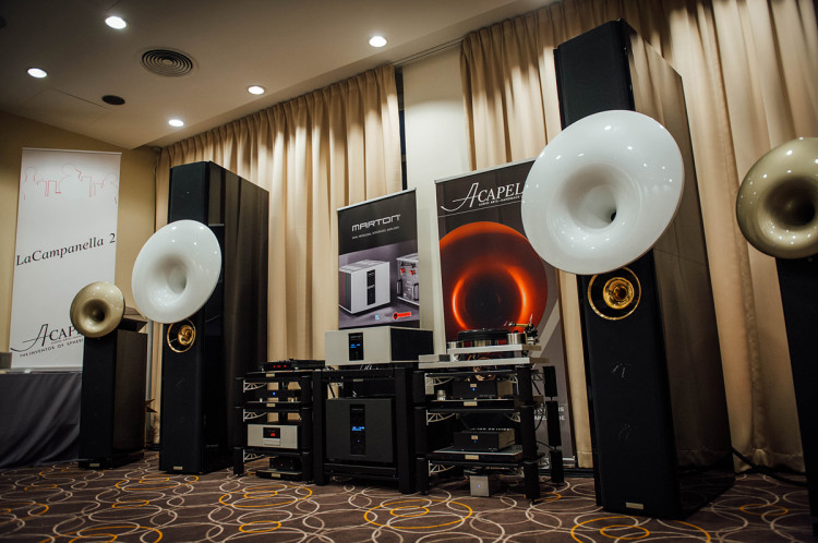 Do Warszawy przyjechały też kolumny Xavian, m.in. Madre Perla i Orfeo, Trenner & Friedl i Falcon Acoustics. Towarzyszyła im elektronika Bladelius, ISOL, Lumin, Fidata (nowy gracz na rynku hi-endowych serwerów, model HFAS-1-XS20U). Kolumnom Phonar towarzyszyły zaś urządzenia m.in. Accuphase i Leben. W Sobieskim zagrały także unikalne (bo z tweeterem plazmowym) kolumny Acapella Campanile 2, które były jednym z hitów tegorocznych targów.