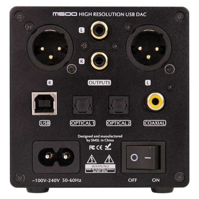 Twórcy nazywają S.M.S.L M500 systemem multimedialnym, ponieważ poza zastosowaniem go wraz ze słuchawkami sprawdzi się on doskonale jako źródło do podłączenia zewnętrznego systemu słuchawkowego lub głośnikowego. Do dyspozycji mamy tutaj wyjścia RCA oraz zbalansowane XLR do podłączenia zewnętrznego wzmacniacza. Jako źródło transmisji danych urządzenie wykorzystuje port USB, koaksjalny oraz dwa wejścia optyczne dla pełnej kompatybilności z urządzeniami wejściowymi.