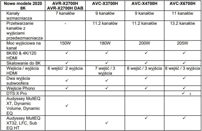 Kluczowe cechy wszystkich AVR serii X z roku 2020