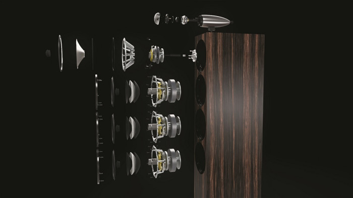 Wolnostojąca, trójdrożna konstrukcja wentylowana Tweeter-on-Top