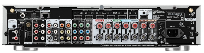 Marantz NR1711 to amplituner 7-kanałowy oferujący 90 W na kanał. Obsługuje wieleformatów dźwięku, w tym Dolby Atmos, Dolby Atmos Height Virtualization Technology, DTS:X oraz DTS Virtual:X. Te trzy ostatnie mają zapewniać wrażenia dźwięku 3D bez potrzeby stosowania głośników sufitowych lub surround.